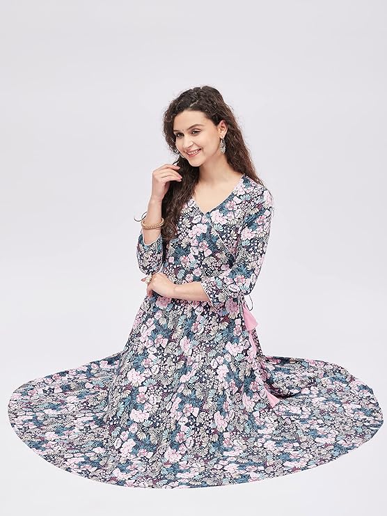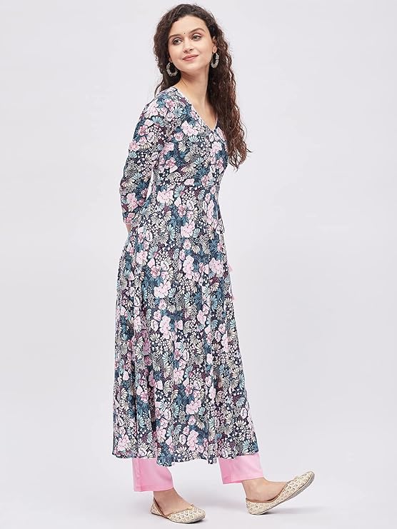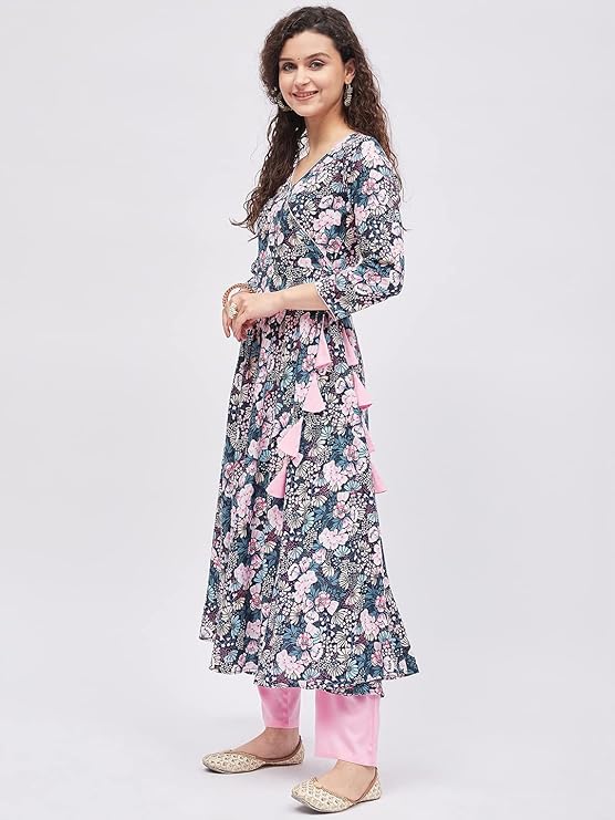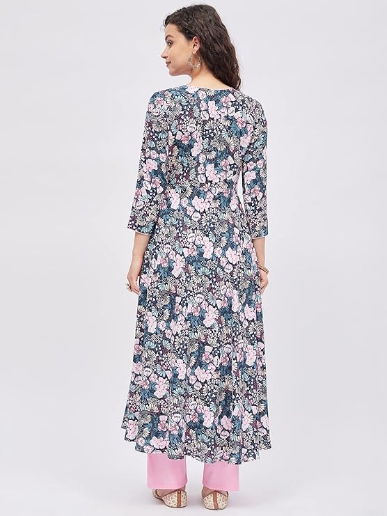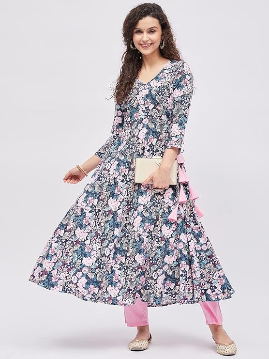 Tissu Women’s Rayon Multicolored Floral Printed Angrakha Kurta
