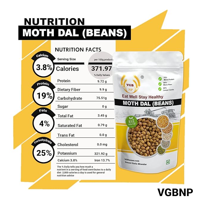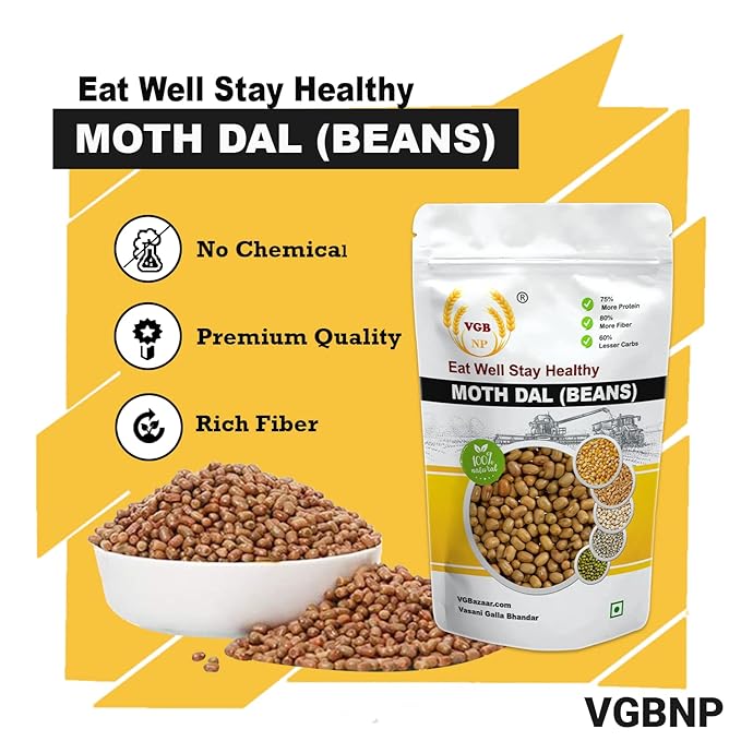 - Health Benefit- VGB Sprouted moth bean are a rich source of calcium and dietary fibre which play a prominent role in building stronger muscles and protecting Matki Beans is Good for heart health and lowers the risk of high blood pressure