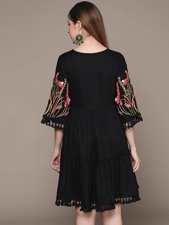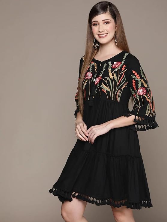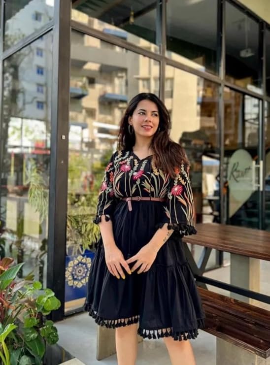VRVastra Embroidered Dress for Women Midi | One Piece Dress for Women | Beach Dress for Women