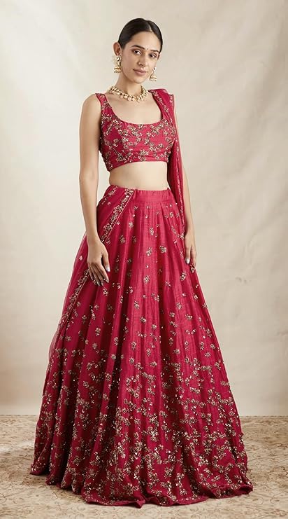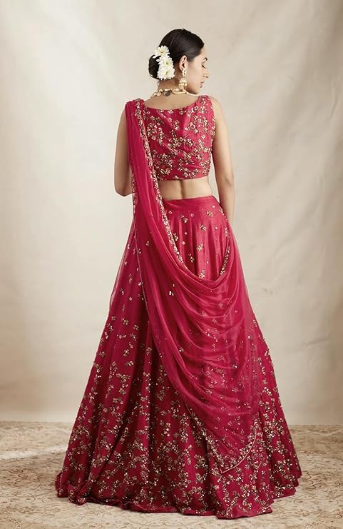 • Beautiful Sequins Embroidery: The delicate embroidery work enhances the beauty of this lehenga choli, adding a shimmering effect.