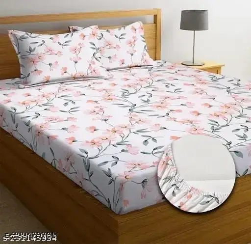 Bedsheet Size : Fitted bedsheet Fits for 78 x 72 inches / 198 x 182 Cms / 6½ x 6 feet , Fits up to mattress thickness of 8 inch / 20 Cms. Pillow Cover Size: Standard size 28 x 18 Inches