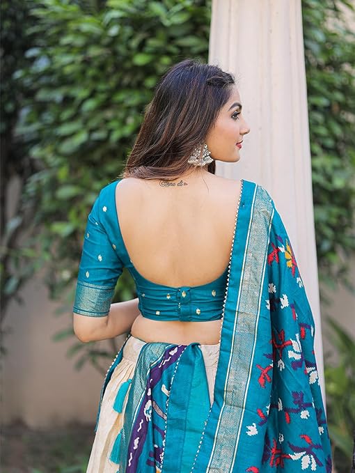 - Lehenga Fabric : Tussar Silk, Blouse fabric : Tussar Silk, Dupatta fabric : Tussar Silk