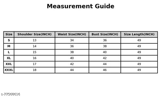 Sizes : S, M, L, XL, XXL, XXXL with respective bust and length measurements