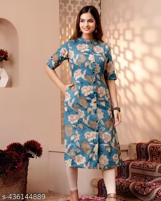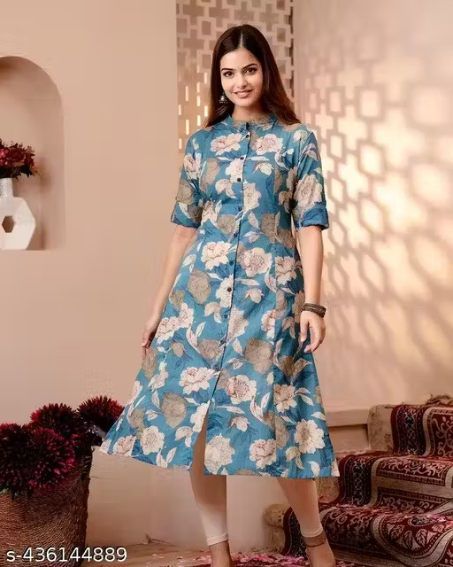 BEUTIFUL A-LINE FLOWER PRINT KURTI WITH SHOW BUTTON FROM THE GREAT WISH BRAND,Kurti For Women, womens kurta it is light in weight and will be soft against your skin. Its unique design and beautiful colour wil
