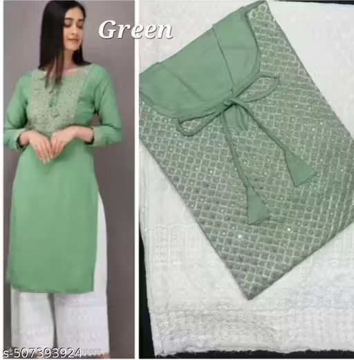 kurti palazoos set ——- -Women Rayon A-line Embroidered Long Kurti With Palazzos