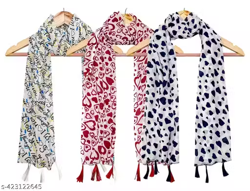 Name : Women’s Printed Georgette Multicolored Scarf and Stoles with Tassels – Set of 3
