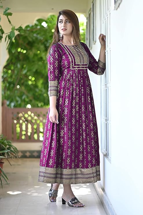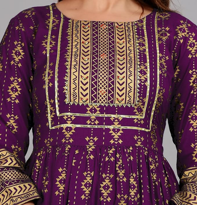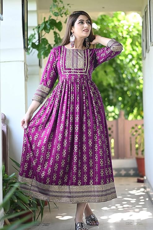 Be the first to review “Women’s Printed Round Neck 3/4 Sleeve Anarkali with Handwork Kurti for Girls and Women”