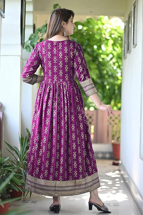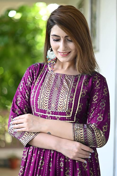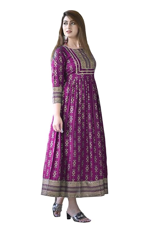 Women’s Printed Round Neck 3/4 Sleeve Anarkali with Handwork Kurti for Girls and Women