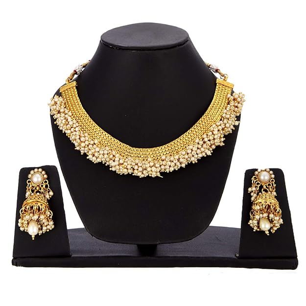 ZENEME Jewellery Set Gold Plated Pearl Wedding Bridal Necklace Jewellery With Earrings and Bangle Combo for Girl and Women (2.4, Gold)
