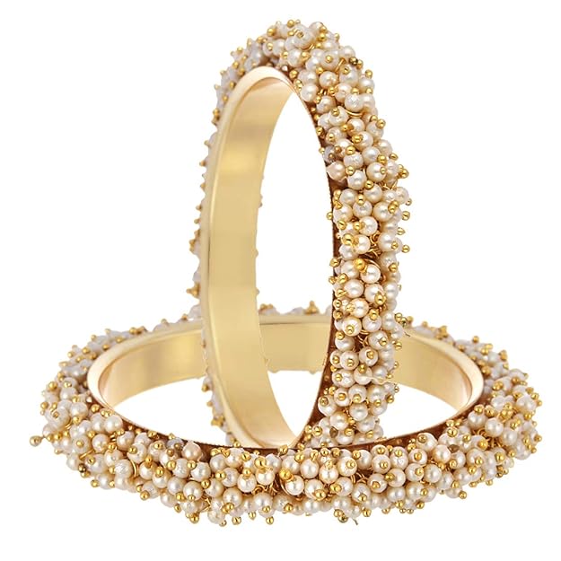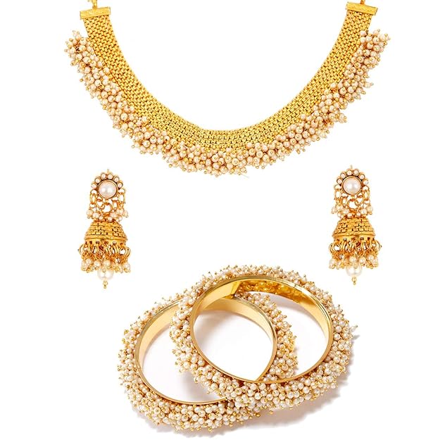 • What You Get:- 1 Gold Plated Pearl Necklace Set with Earring & 1 Pair Of Elegant Style Bangle